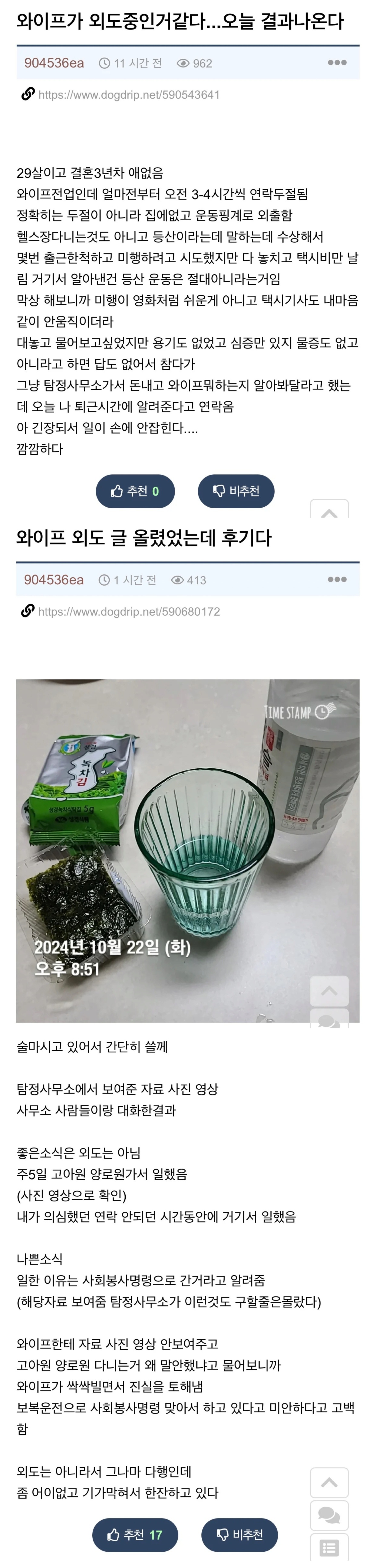 와이프가 외도 중인거 같다…오늘 결과 나온다 작성자 정보 붐붐의민족 작성 작성일 2024.10.25 10:56 컨텐츠 정보 16,118 조회 목록 본문 그나마 다행이긴한데…보복운전을 어느 정도 수준으로 해야 사회봉사명령이 나오나요??? 관련자료 링크 https://www.kaov.org/bbs/board.php?bo_table=KA_3101&wr_id=5447 1216 회 연결 댓글 0 등록된 댓글이 없습니다. 로그인한 회원만 댓글 등록이 가능합니다. 목록