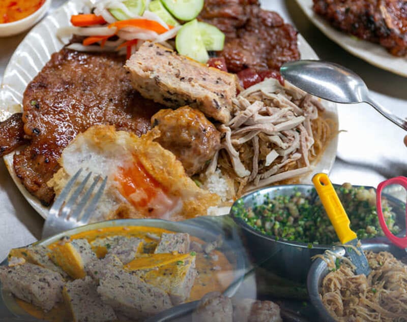 1990년대부터 이 소박한 노점은 많은 지역 주민들이 도시에서 가장 맛있는 밥 요리(베트남어로 com tam)로 여기는 요리를 제공해 왔습니다. 가장 인기 있는 버전은 비밀 소스에 절인 돼지고기를 얹고 숯불에 완벽하게 구운 찐 밥입니다. 모든 요리에 절인 무와 새콤달콤한 생선 소스가 곁들여집니다. 치킨 버전도 있습니다. 2023년 6월 6일에 발표된 미슐랭이 선정한 Bib Gourmands에도 추가되었습니다.